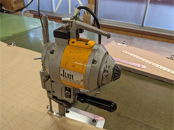 裁断工場にて生地を裁断。